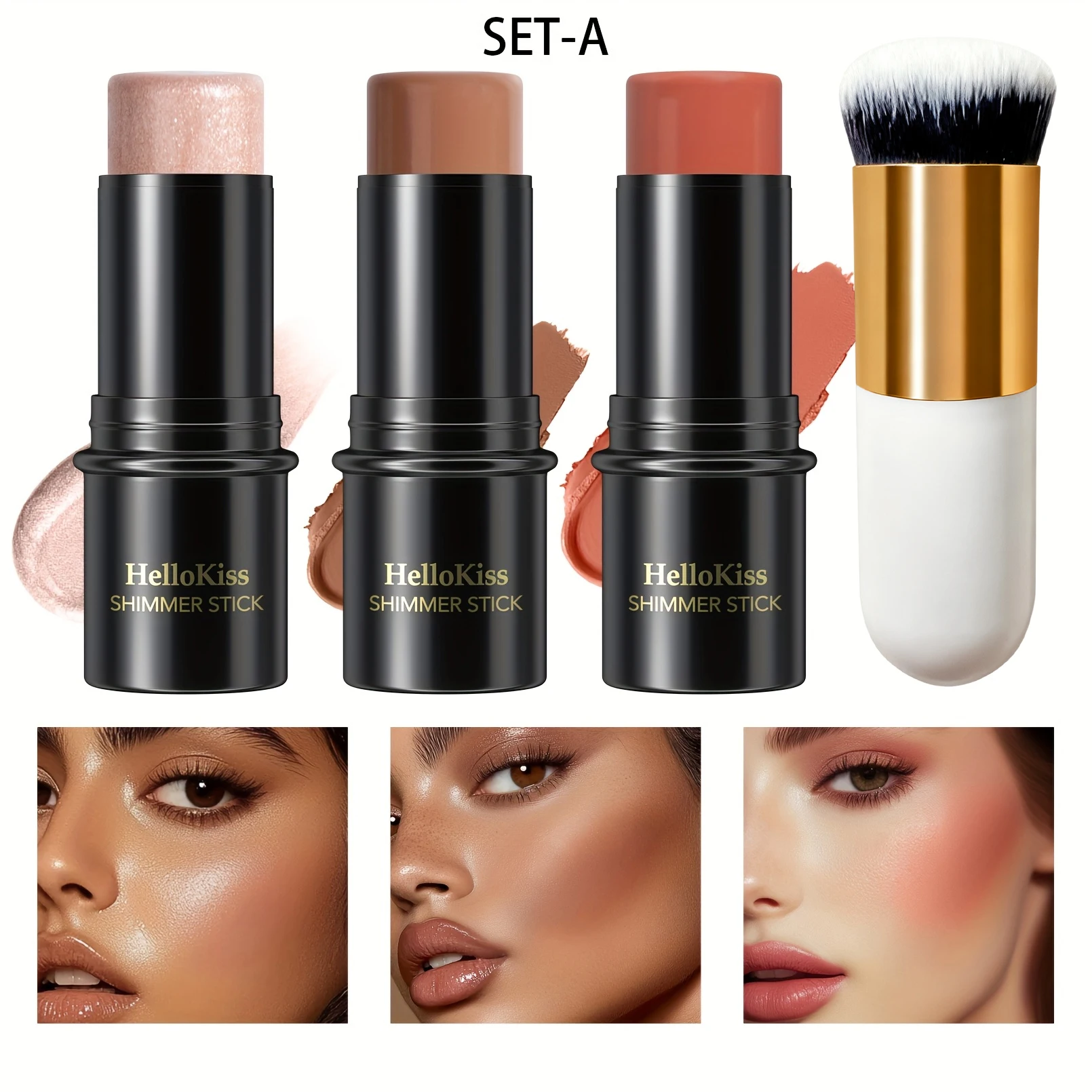 4pcs Contour Stick Set, Highlighter, Blush & Bronzer with Highlight Brush Long-Lasting, Perfect for Halloween & Graduation Gifts